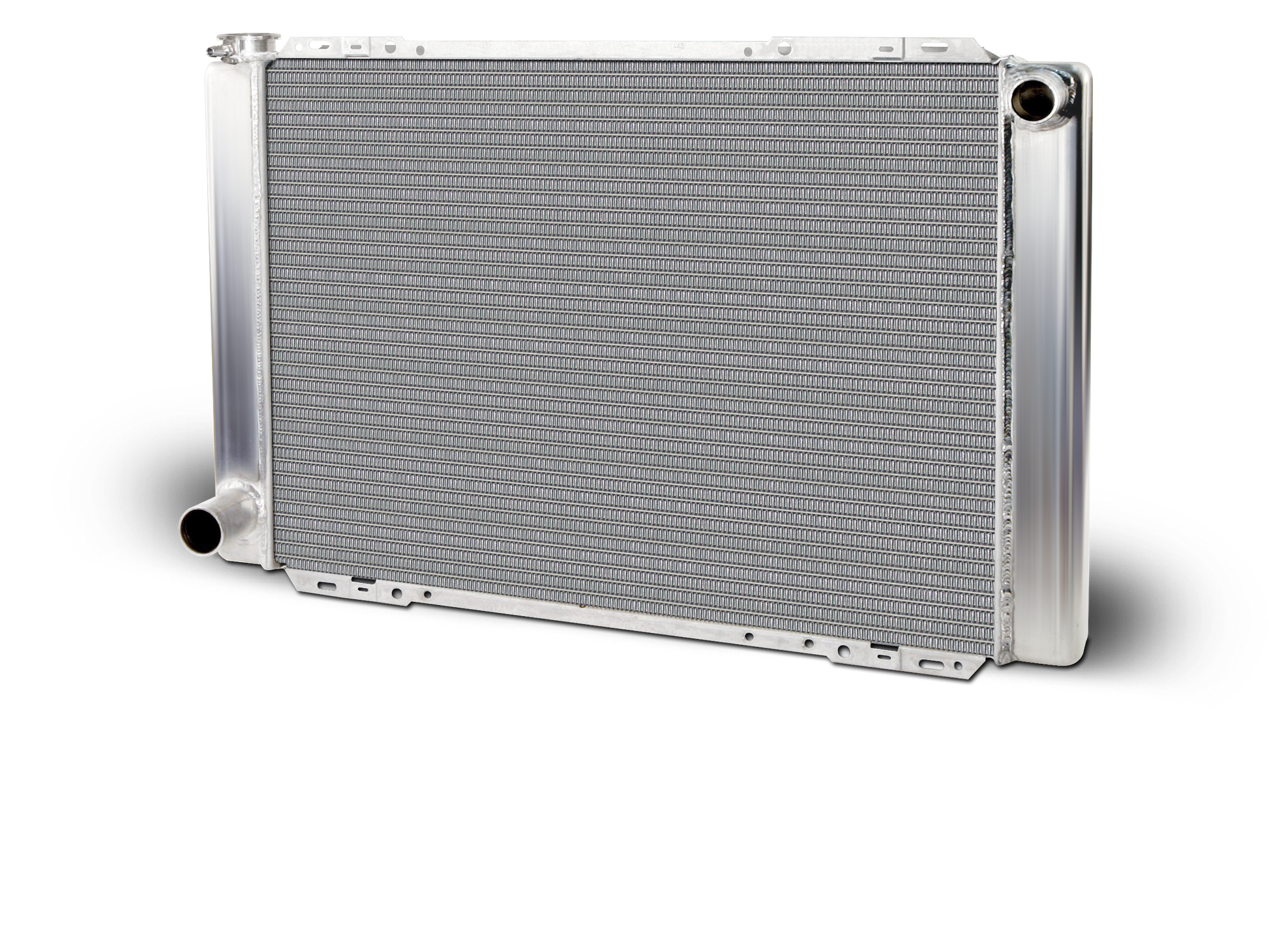 AFCO Fox Body Mustang racing and performance radiator. 28 1/2" W x 19" T single pass design for Ford engines. Utilizes 24 1/2" wide high efficiency core featuring optimal fin count ratio for the best performance in cooling at a budget price. NOTE: Large capacity for race applications and non-A/C street applications. A/C compressor will interfere with installation.